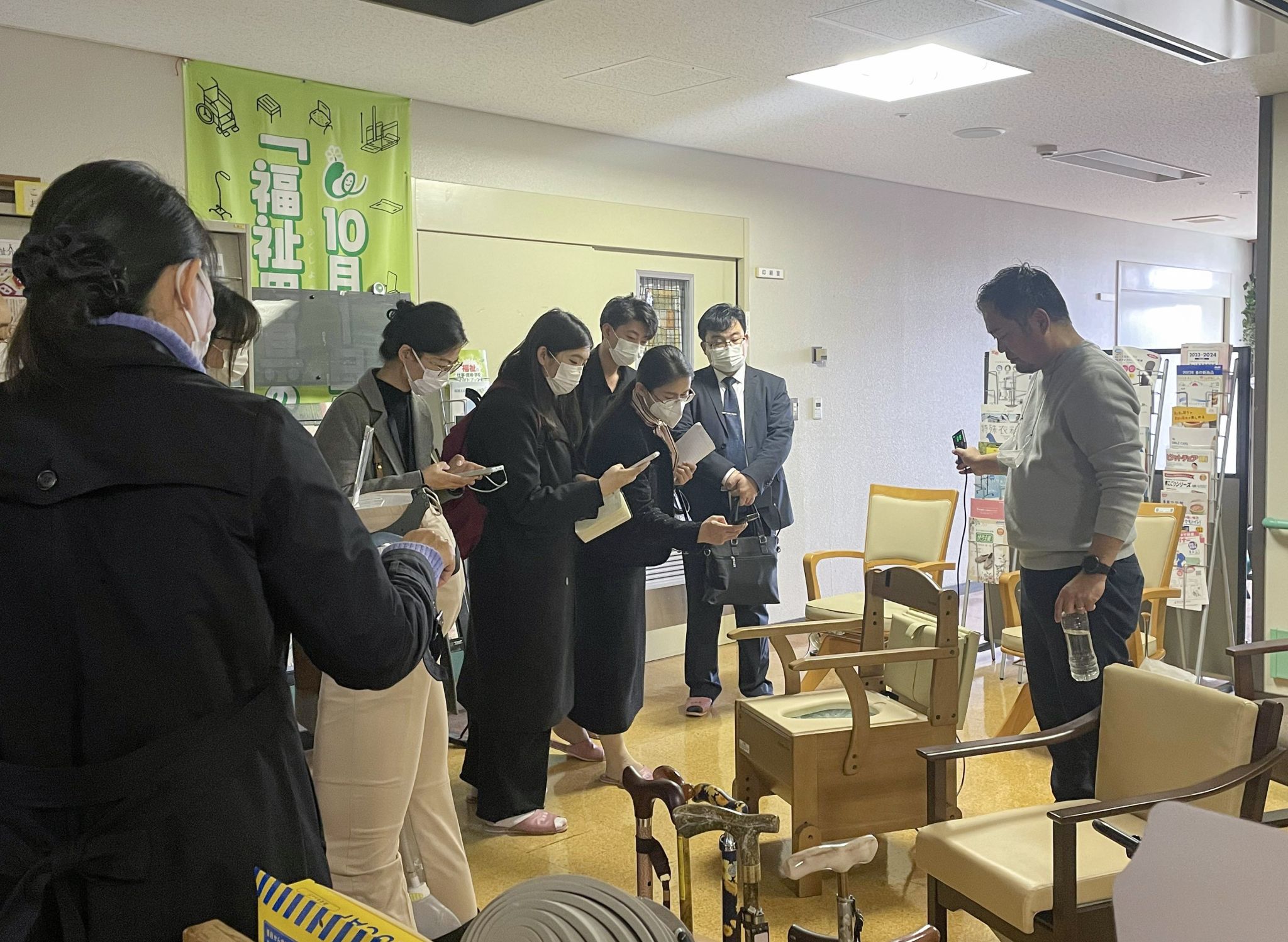 研学团还到岐阜县山田医院、寺田乐园养老院、立寿乐园养老院考察,了解医院和养老院的工作流程、职责分工、工作理念、老人生活情况、介护人员工作情况,并学习参观日本先进智能医疗床、智能轮椅等养老设施。